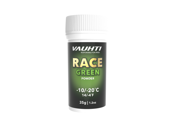 VAUHTI RACE GREEN POWDER pulverissa olevat korkealuokkaiset vaharaaka-aineet, sinkkistearaatti ja silikonivaha takaavat hyvän toiminnan ja kulutuskestävyyden kaikissa sääolosuhteissa, erityisesti luonnon lumelle ja hienorakeiselle lumelle. Parhaimmillaan käytettynä nestemäisen pohjavoiteen kanssa.